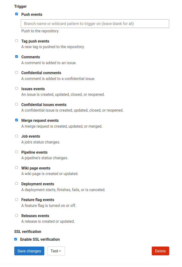 target-namespace(where you are planning to run your pipeline CI):kubectl -n target-namespace create secret generic gitlab-webhook-config \ --from-literal provider.token="TOKEN_AS_GENERATED_PREVIOUSLY" \ --from-literal webhook.secret="SECRET_AS_SET_IN_WEBHOOK_CONFIGURATION"Create the